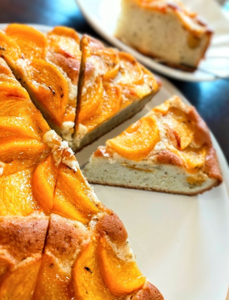 生地の上を彩るのは、美しくスライスされた柿のデコレーション。