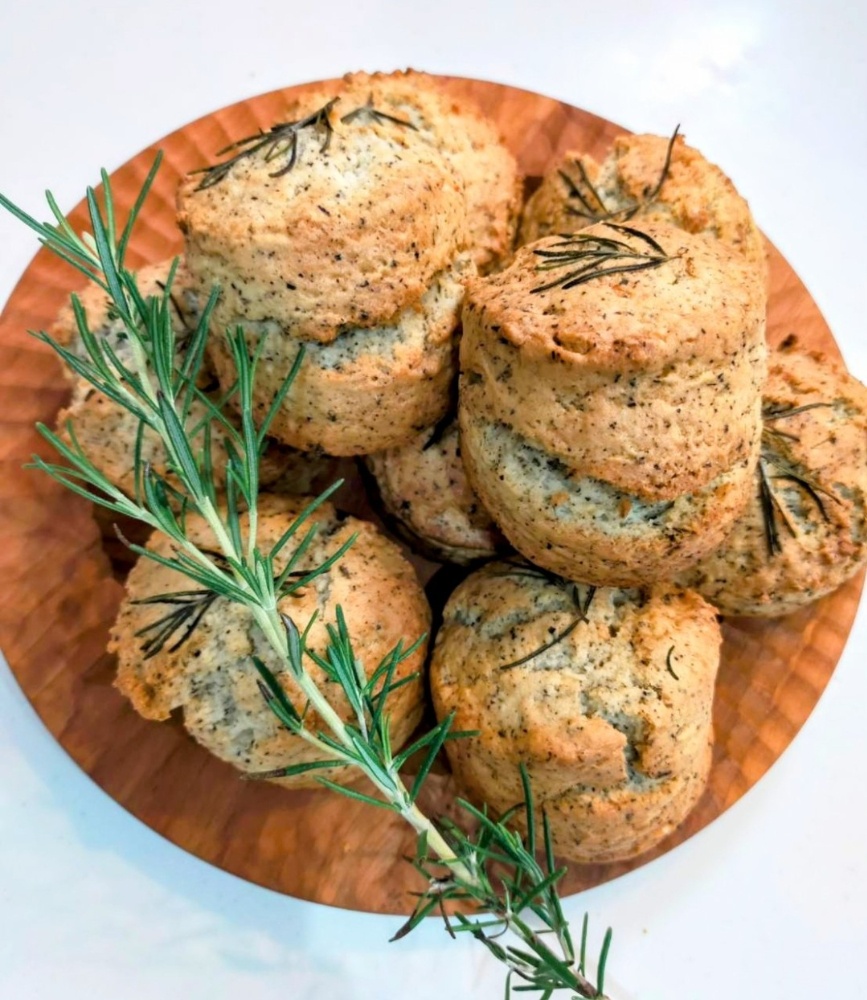 このスコーンの主役は、間違いなく庭から摘んできたばかりのフレッシュなローズマリーです。