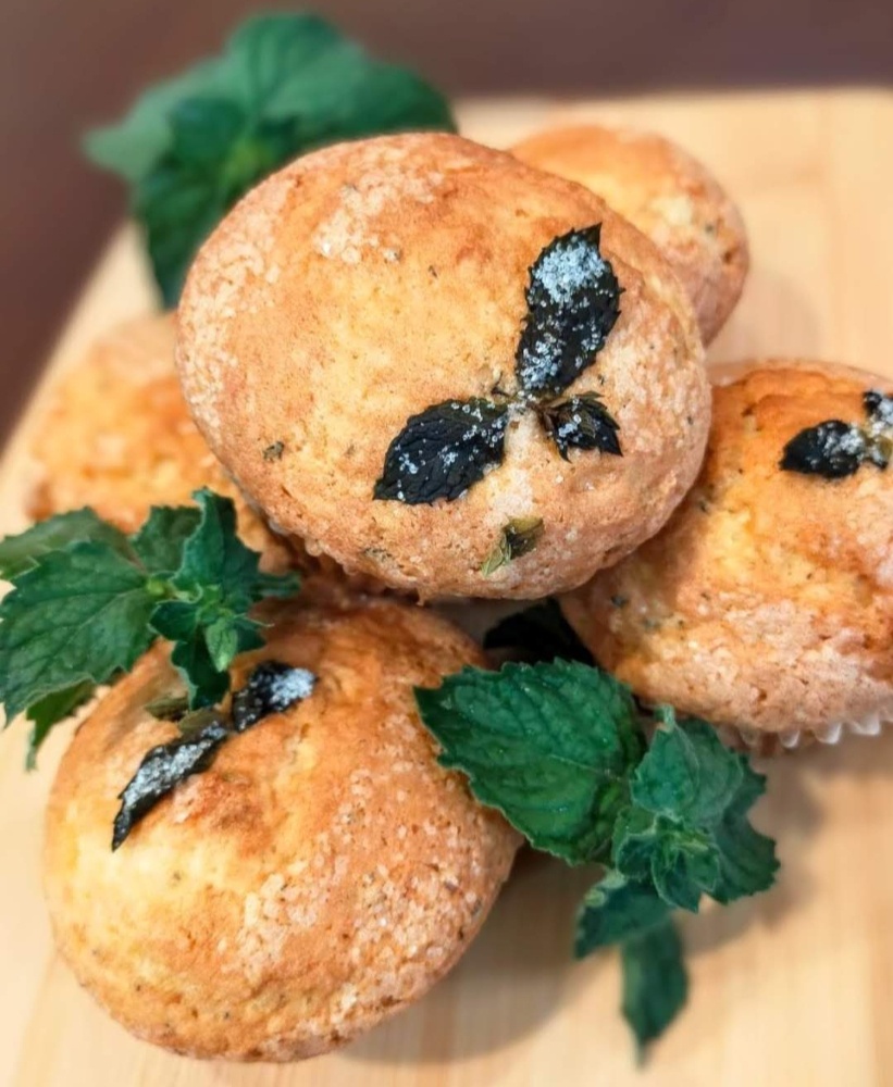 オーブンから取り出した瞬間に広がるのは、焼き菓子の甘い香りと、スペアミントの涼やかな香りが溶け合った至福の香りです。スペアミントは、ペパーミントに比べるとメントールの刺激が穏やかで、特有の甘みを帯びているのが特徴です。そのため、バターや卵のコクがあるマフィン生地との相性は極めて良好で、一口含めば鼻に抜ける爽快感とともに、優しい風味が口いっぱいに広がります。