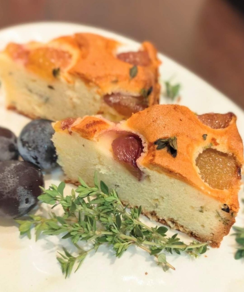そこに、レモンのような清涼感を持つレモンタイムの葉を細かく刻んで練り込み、皮を剥いた瑞々しいぶどうをたっぷりと乗せて焼き上げました。オーブンから漂う香りは、まるで初夏の庭園を歩いているかのような爽やかさと、焼き菓子特有の芳醇な甘さに満ちています。気取らず、それでいて丁寧にいれたお茶と一緒に味わいたくなる、大人のための日常着のようなスイーツといえるでしょう。