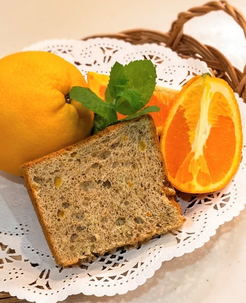 日々の暮らしの中で、ふとした瞬間に心を解きほぐしてくれる存在。それが、ハーブを主役にしたハーブスイーツの醍醐味ではないでしょうか。今回焼き上げたシフォンケーキは、細かくミルしたドライジャスミンの茶葉と、手作りのオレンジジャムを丁寧に練り込んだ、香り高い一品です。